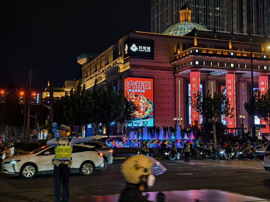 针对环球港、环宇城、中环百联、天安千树等热门商圈及人流密集场所,警方依托“科技+人力”手段,实施精准疏导和管控,确保人流安全有序。在客流集中、安全风险较高的点位和路段,警方严格落实安全管理和应急处置措施,并广泛发动群防群治力量参与巡逻守护,提升整体防控效能。